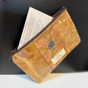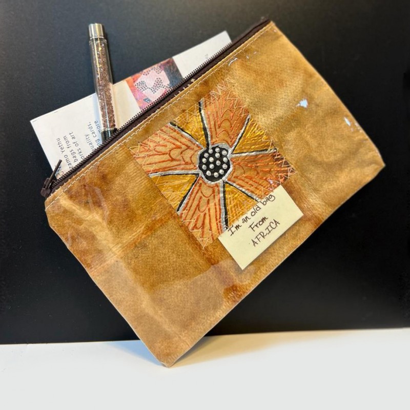 Support the South African local township upliftment project for employment creation and environmental protection. Gracious sews this pouch with recycled tea-bags with the use of a gel to add a protective layer.